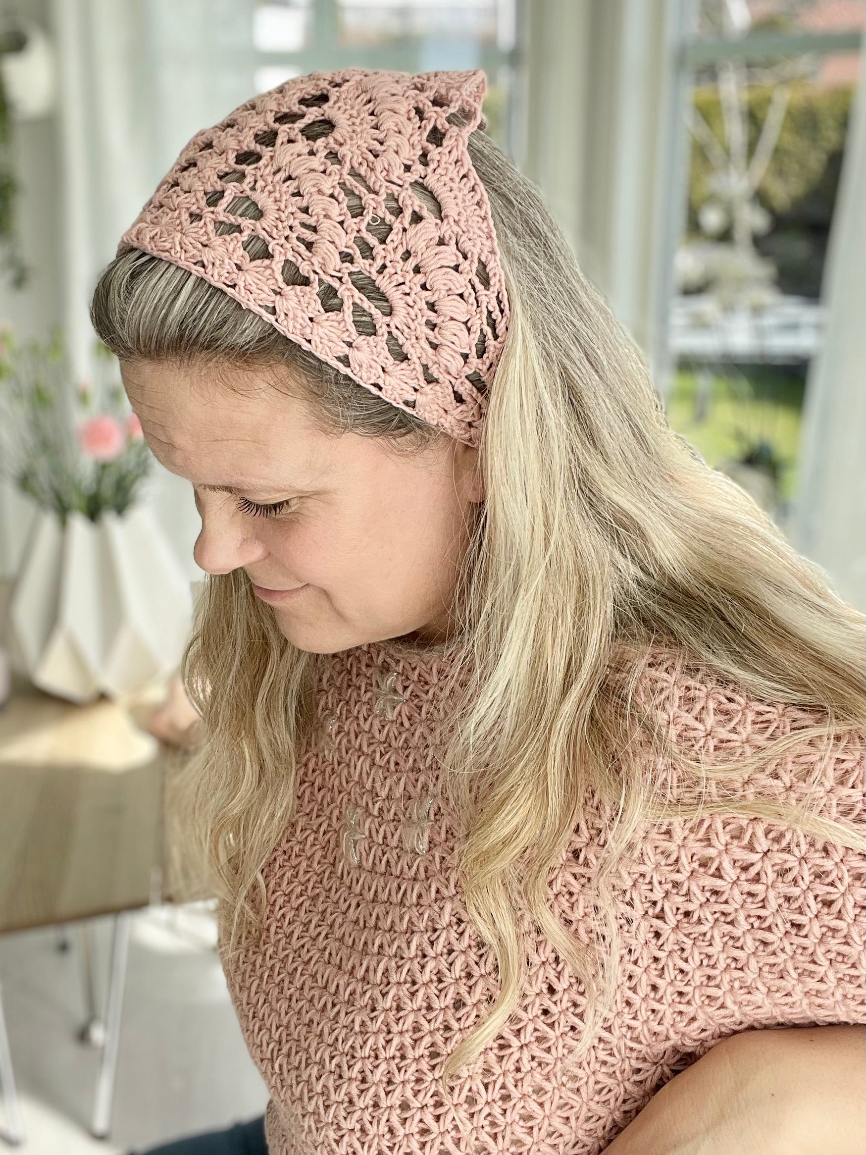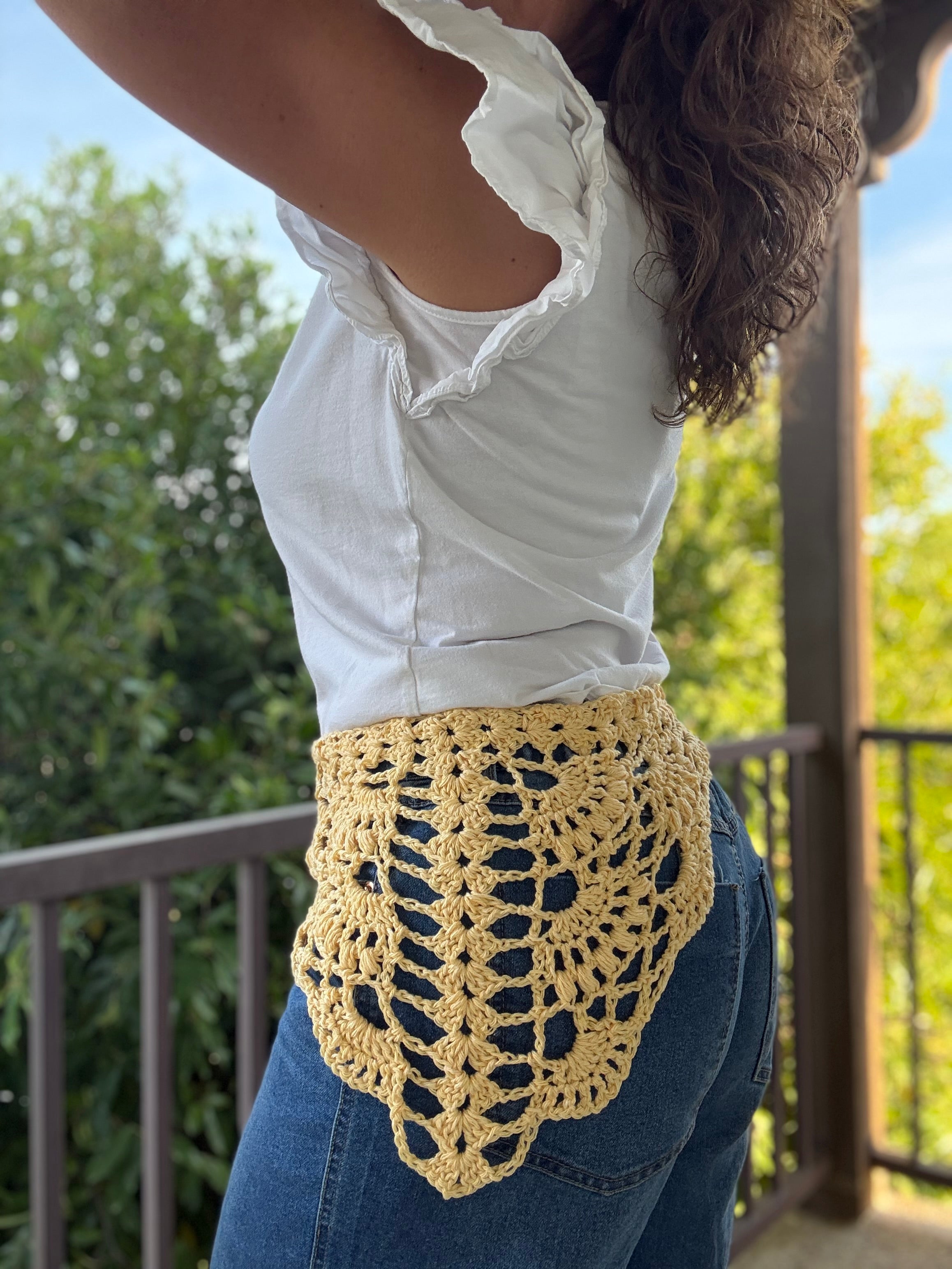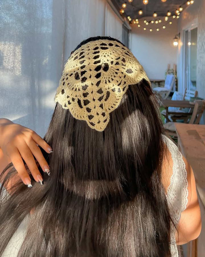 The Breezy Boho Bandana is a fun and fast little project, great for stash busting. It features pretty eye-catching lace details and open stitch work formed by using very basic crochet stitching. The bandana is a cute addition to your warm weather wardrobe and will add a fun boho, summer vibe to your look in no time.