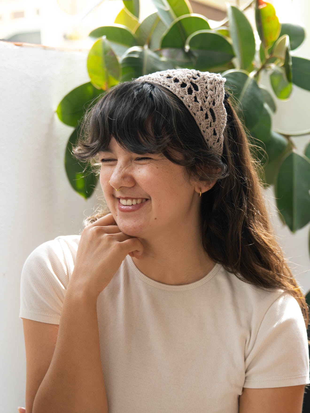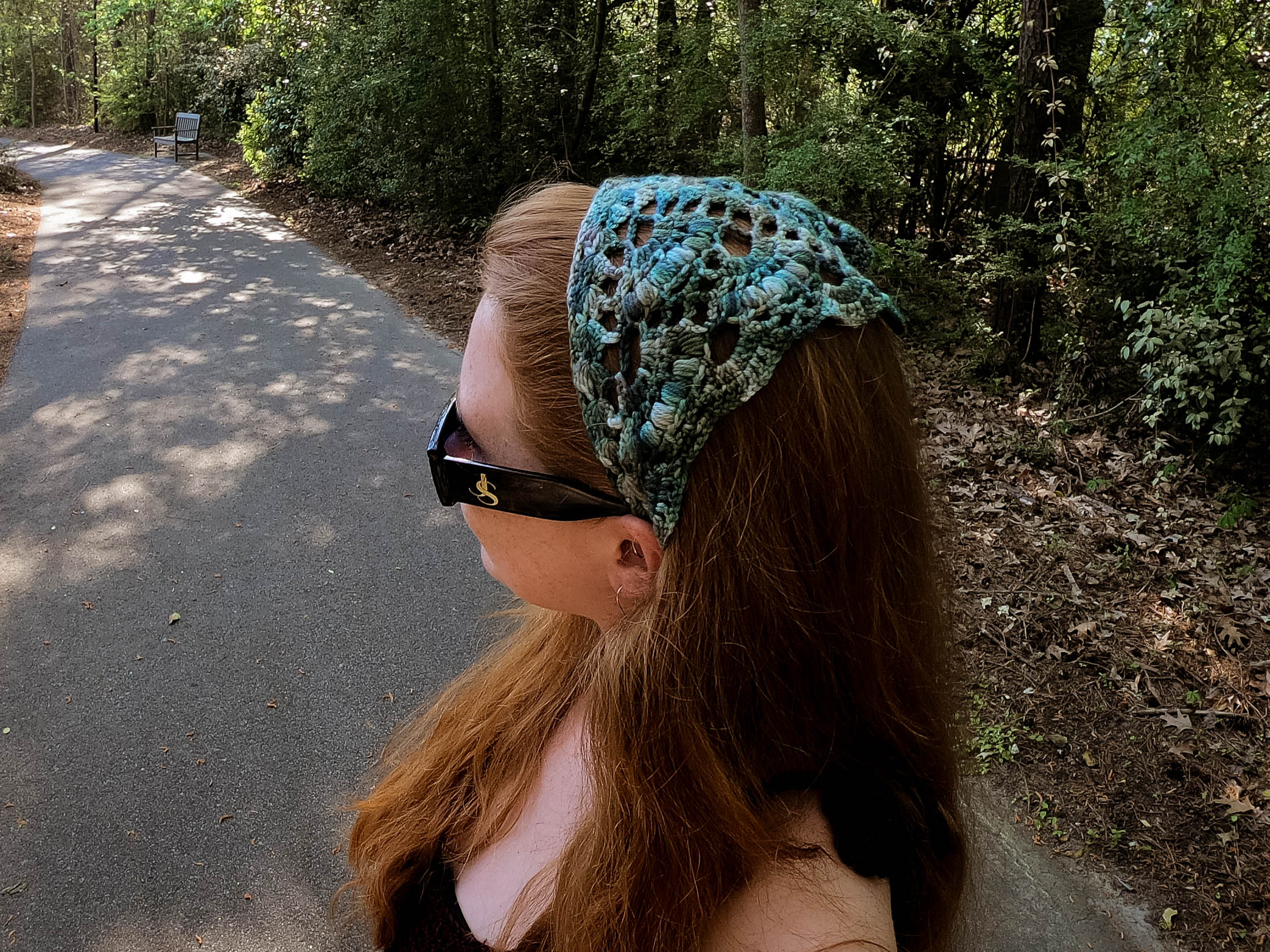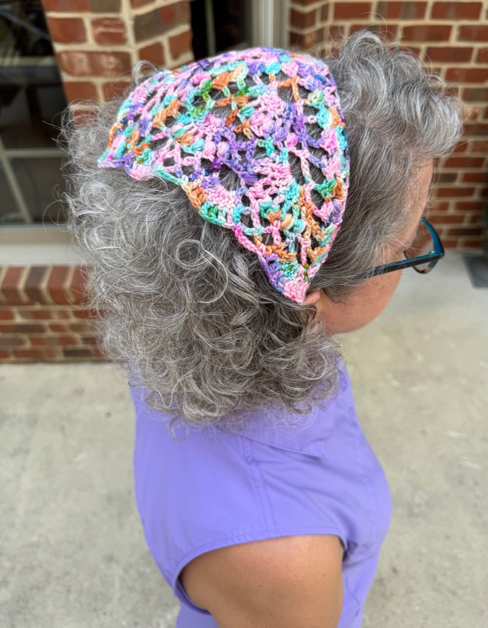 The Breezy Boho Bandana is a fun and fast little project, great for stash busting. It features pretty eye-catching lace details and open stitch work formed by using very basic crochet stitching. The bandana is a cute addition to your warm weather wardrobe and will add a fun boho, summer vibe to your look in no time.