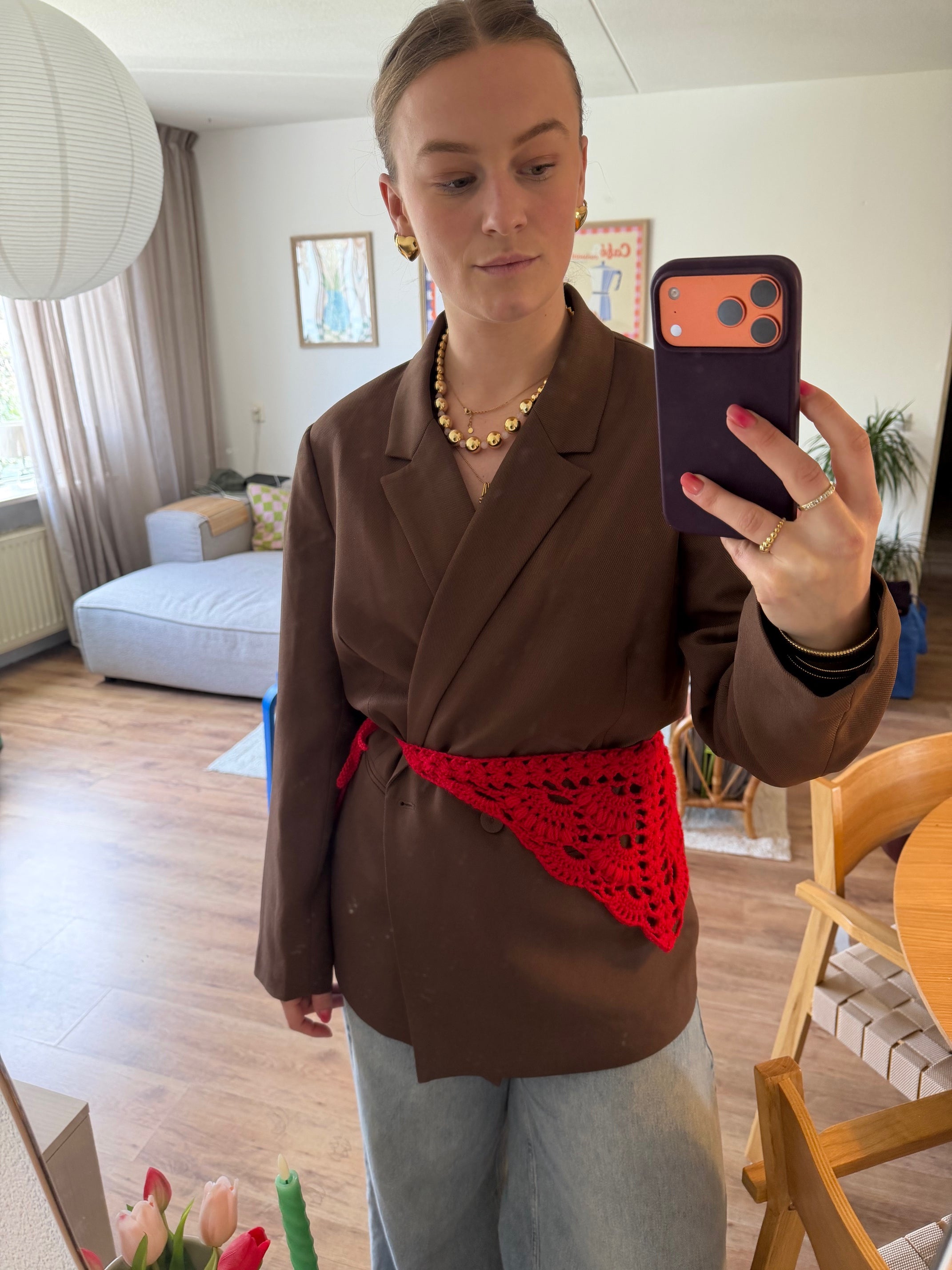 Hip scarf: One or two skeins of 8/8 cotton yarn, depending on the yardage.