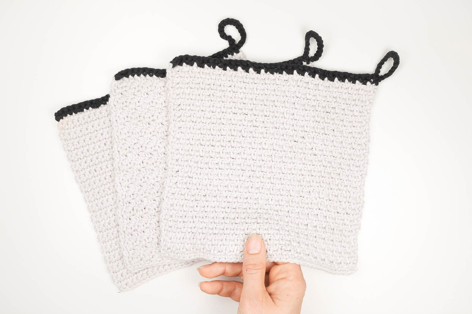 The 3 easy crochet dishcloths are wonderful little projects. The patterns are perfect for absolute beginners, as cute gifts, or as pretty washcloths for your bathroom or kitchen. All 3 patterns are accompanied by video guides that will teach you exactly what you need to know to make them. You only have to know how to single crochet and double crochet.