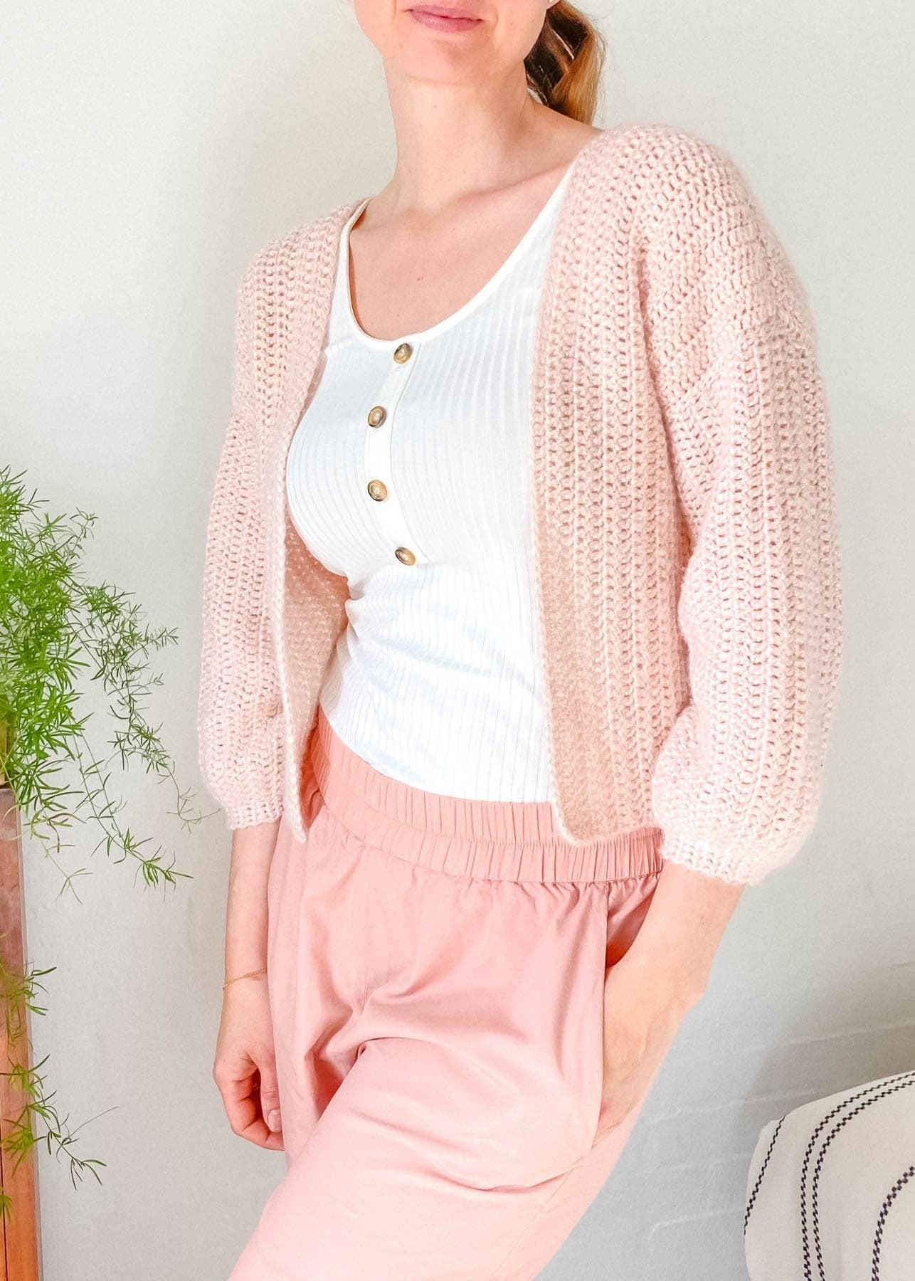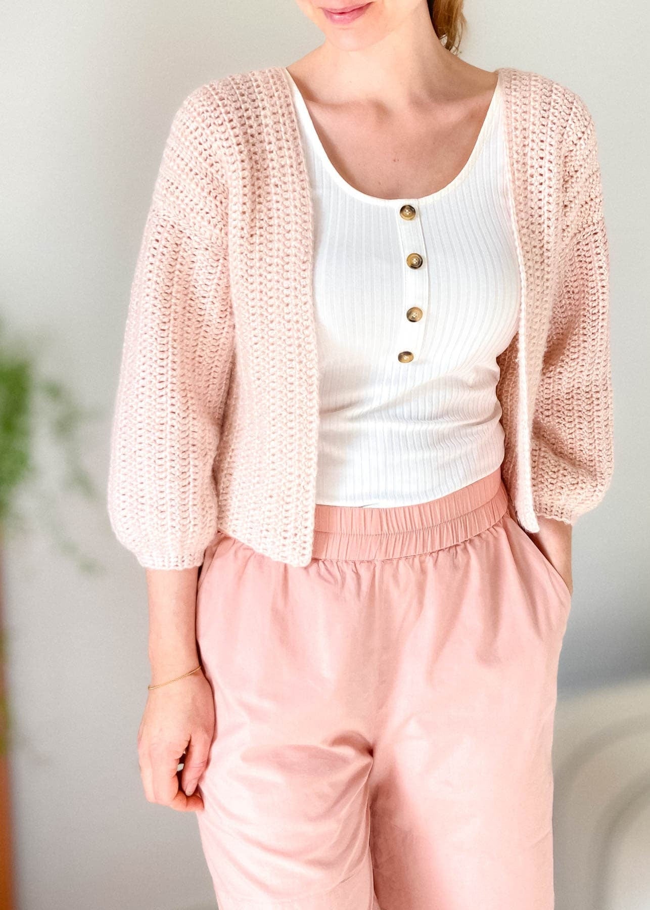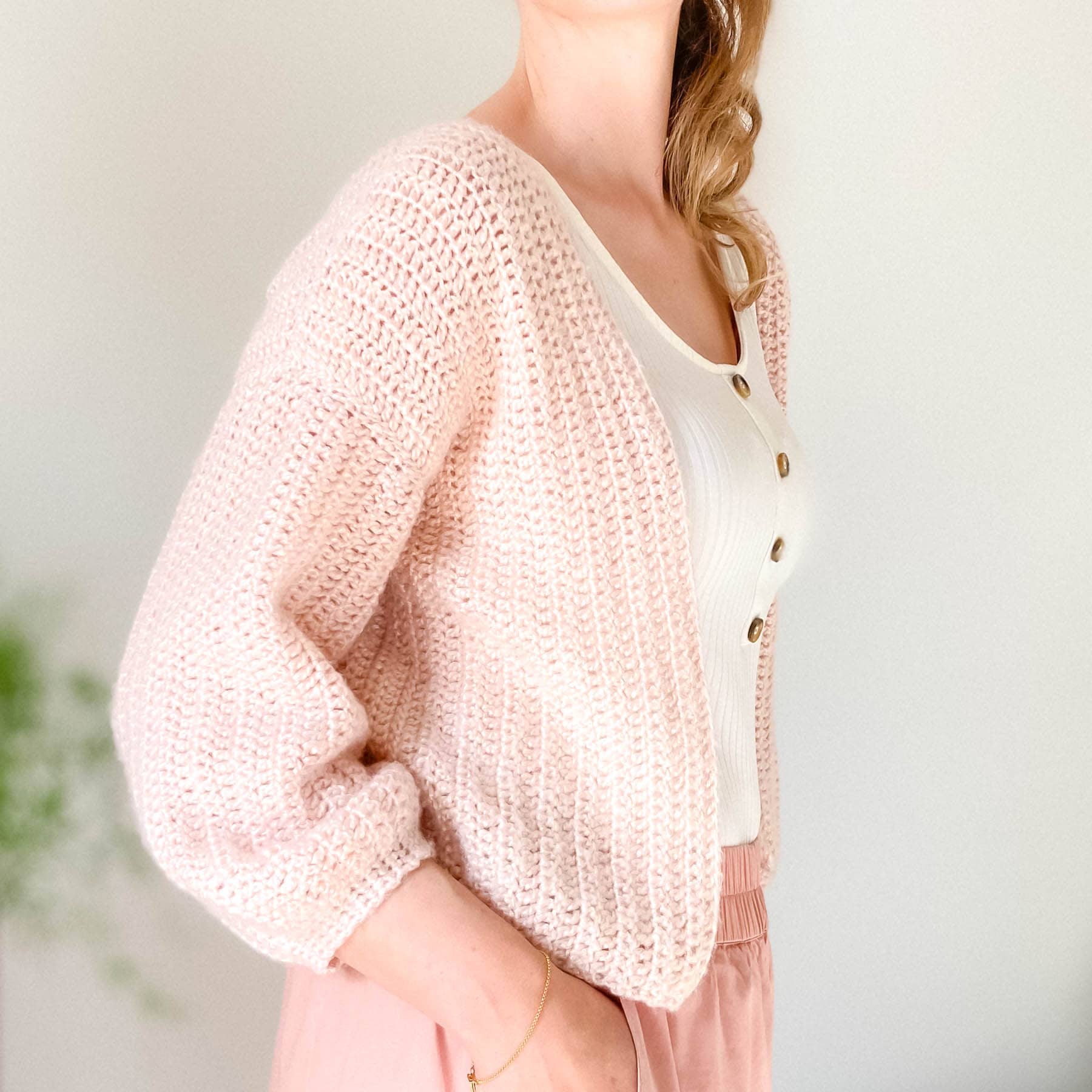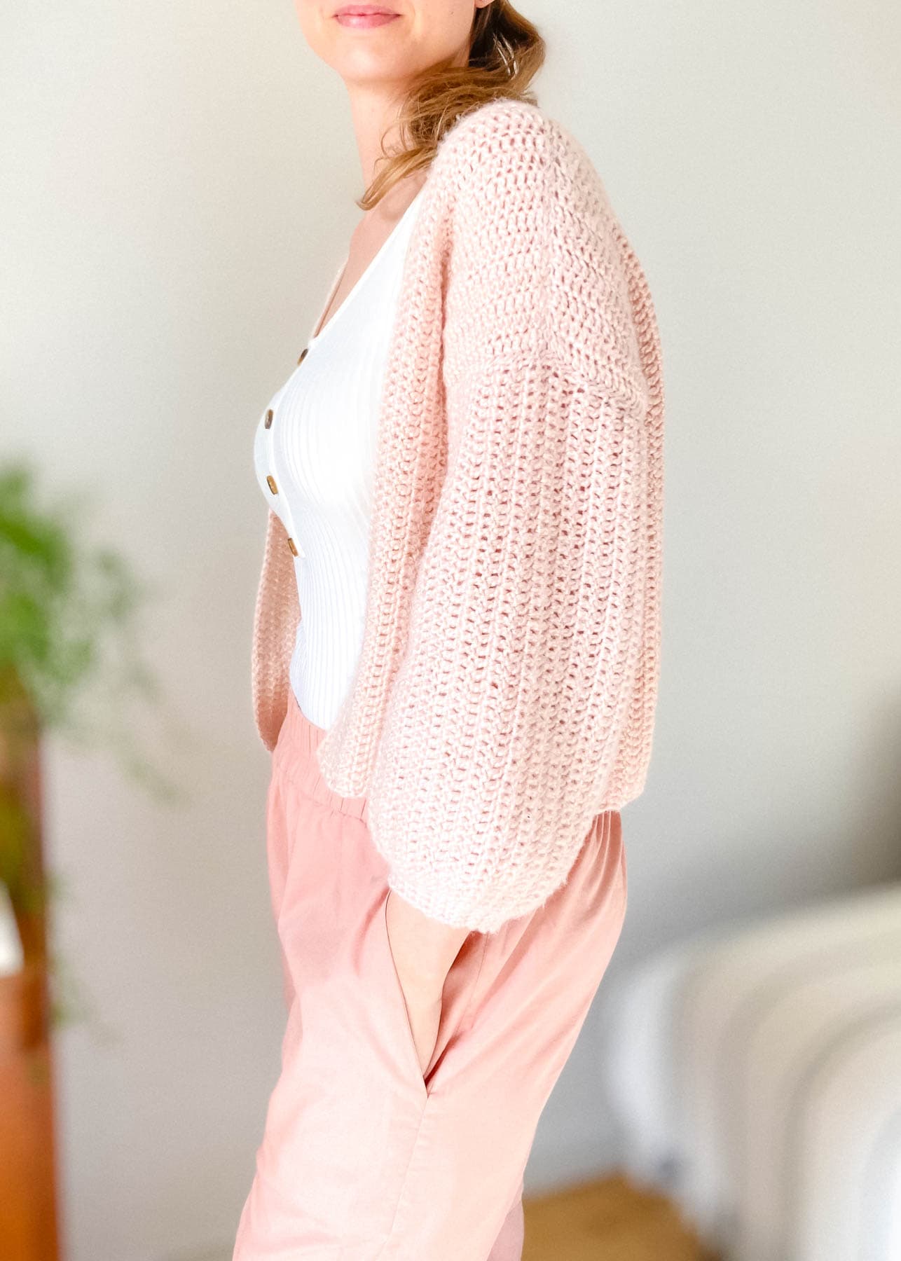 The Everyday Easy Crochet Cardigan is the perfect crochet cardigan pattern for absolute beginners. This loosely fitted cardigan with 3/4 sleeves is constructed in the easiest way possible. You make two front panels, one back panel, and two sleeves. Then sew them together and voila! You have yourself a super pretty crochet cardigan 🥰